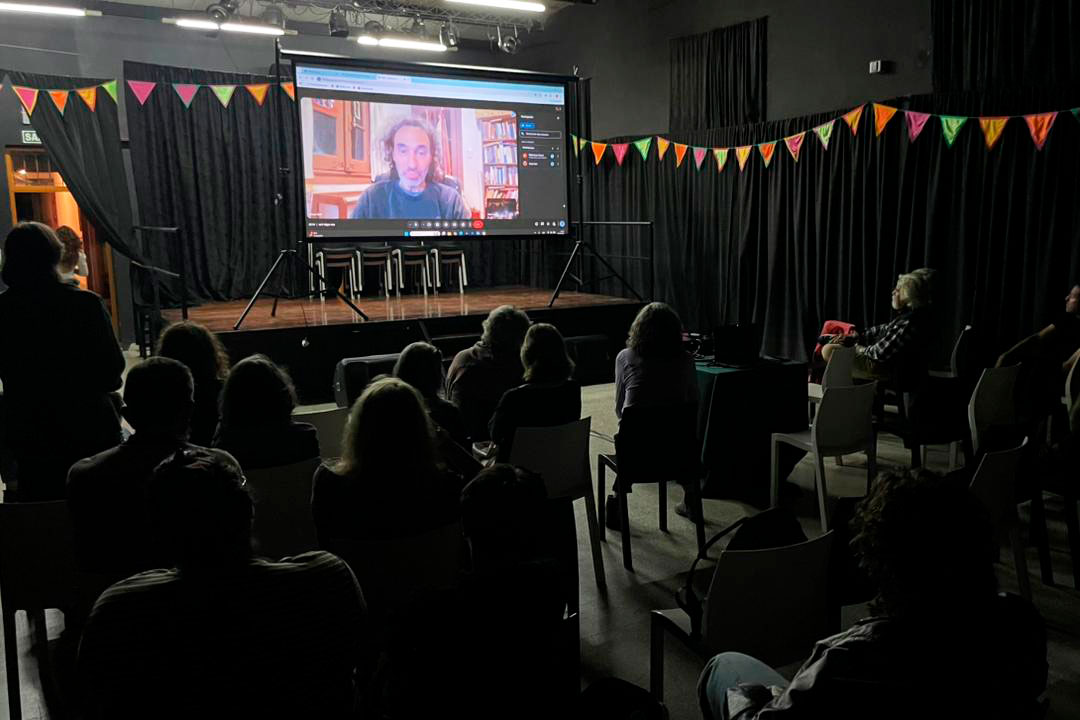 La función, que estuvo a cargo del Cine Club Musidora, fue presentada por Pablo Russo, quien contextualizó sobre la película y la trayectoria de sus directores. Luego de la proyección, se estableció una conexión por meet con Omar Neri, que desde la pantalla grande contestó algunas preguntas del público presente respecto a la realización, la investigación, las personas que ofrecieron sus testimonios y las expectativas del recorrido del documental.