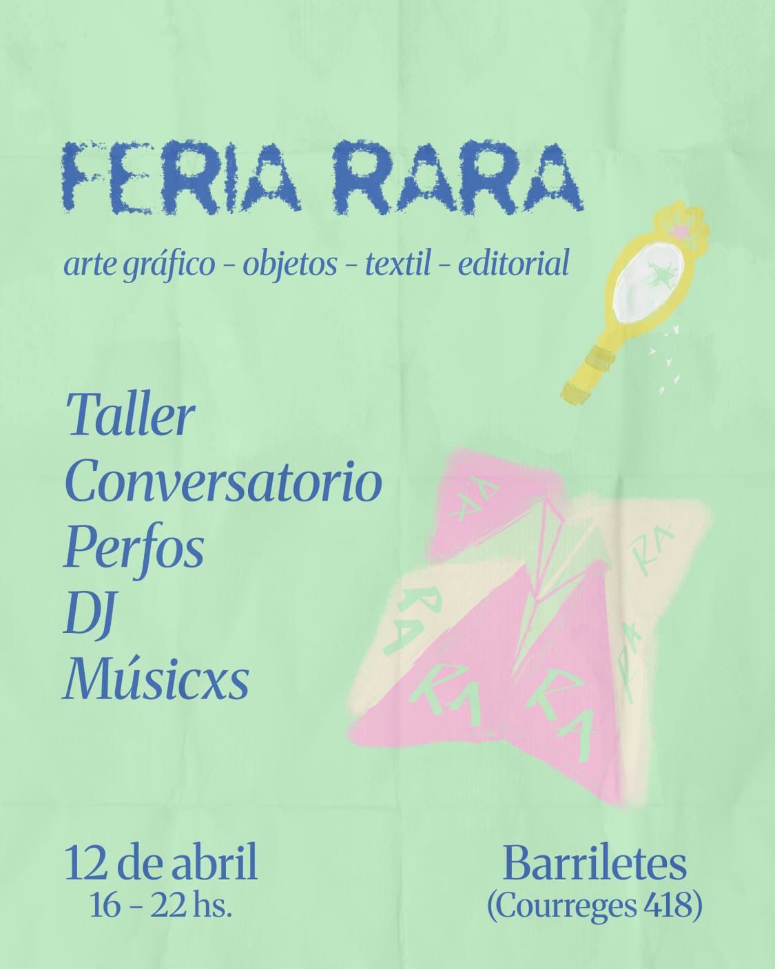 Vuelve la Feria Rara a Barriletes (Courreges 418), este domingo 12 de abril, de 16 a 20, con entrada libre y gratuita: feria de proyectos de arte gráfico, objetos, indumentaria y editorial, priorizando la producción local y de diseño propio.